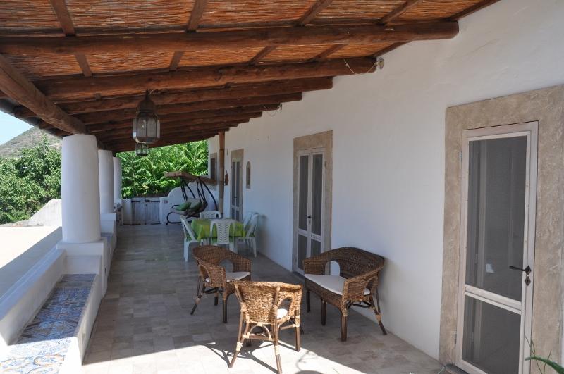 L’ampia veranda che circonda la casa ospiterà i vostri momenti di relax, vi consentirà infatti di fare colazione sul meraviglioso paesaggio marino e la sera potrete assistere a splendidi tramonti mozzafiato che dipingono il cielo di rosso.